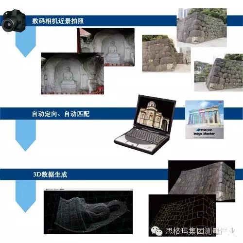 Image Master pro版本搭配普通数码相机用于近景摄影测量,通过数码相机拍摄的影像,全自动生成三维模型,并且在此模型的基础上进行数据编辑和分析,可用于文物考古、建筑调查、边坡监测、灾害应急、模型制作等众多领域。