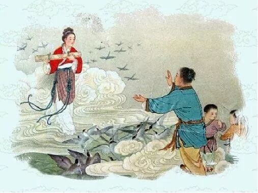 七夕今宵看碧宵,牵牛织女渡河桥。