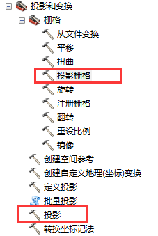 如果是进行栅格数据的投影,就用“栅格”文件夹下的“投影栅格”工具。