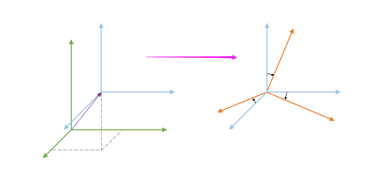 这就是属于空间解析几何里的空间直角坐标系的移动、转换问题,还有个更高级的说法——仿射变换。
